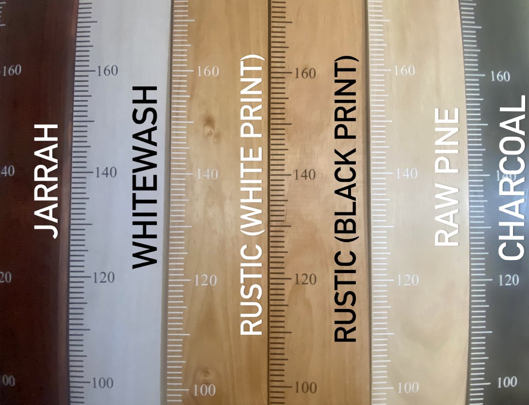 All our height rulers are custom made to order and are available in your choice of finish and vinyl print. We pride ourself on our personal approach, working with you to create a piece that is truely as unique as you are. Our height rulers can be delivered Australia Wide via Courier at a charge of $20 postage and handling (some exclusions may apply).